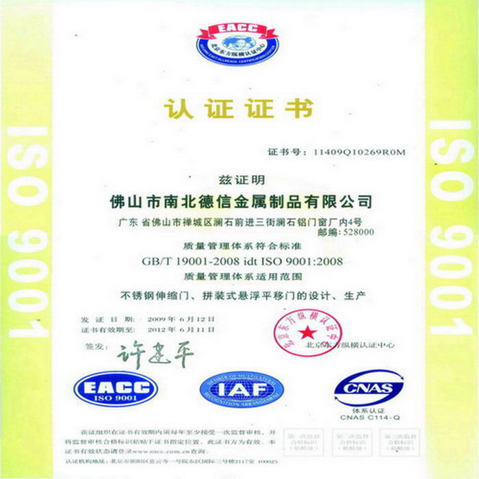 喜讯:南北通过国际质量管理体系认证