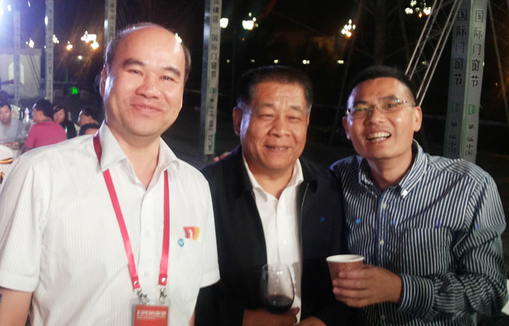 中国国际门窗城董事长倪守强与潘冠军会长公司和霍董在展会晚宴上合影