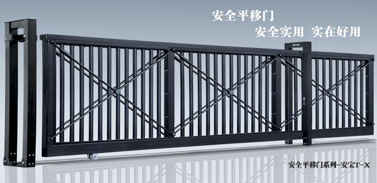 安全平移门门型有德宝(单轨,铝合金)、安宝(单轨,不锈钢)、富宝(双轨,不锈钢),表面处理可采用静电喷涂、精抛等,表面色泽丰富。整体外型美观、结构紧凑、各个部位全部采用不锈钢304螺丝拼装连接,可拆装,便于运输。产品外置驱动、运行稳定、顺畅、安静,安全性能高、故障率极低、使用寿命长,性价比高。产品行走地面轨道,适合小区、厂矿、工厂等各类出入口。
